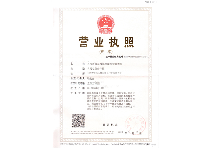 騰裕水稻合作社執(zhí)照